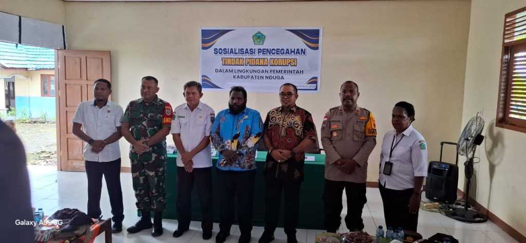 Dalam upaya Pencegahan Korupsi, maka Pemerintah Daerah melalui Inspektorat Kabupaten Nduga melaksanakan kegiatan Sosialisasi Pencegahan Tindak Pidana Korupsi dalam lingkungan Pemerintah Daerah Kabupaten Nduga. Kegiatan ini diikuti OPD lingkup Pemda Nduga, pelaku usaha dan stakeholders terkait. Pemateri dalam kegiatan tersebut adalah Rustam,SE,MAP (ASN Inspektorat Provinsi Papua Pegunungan)