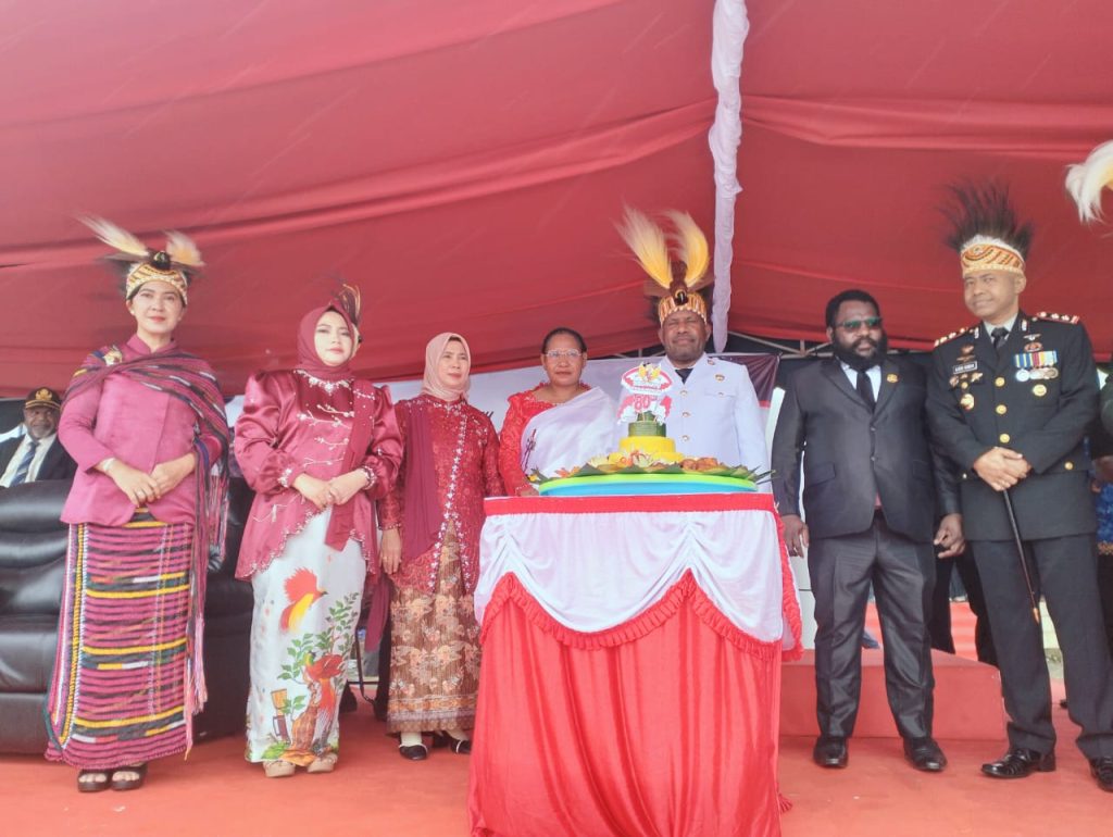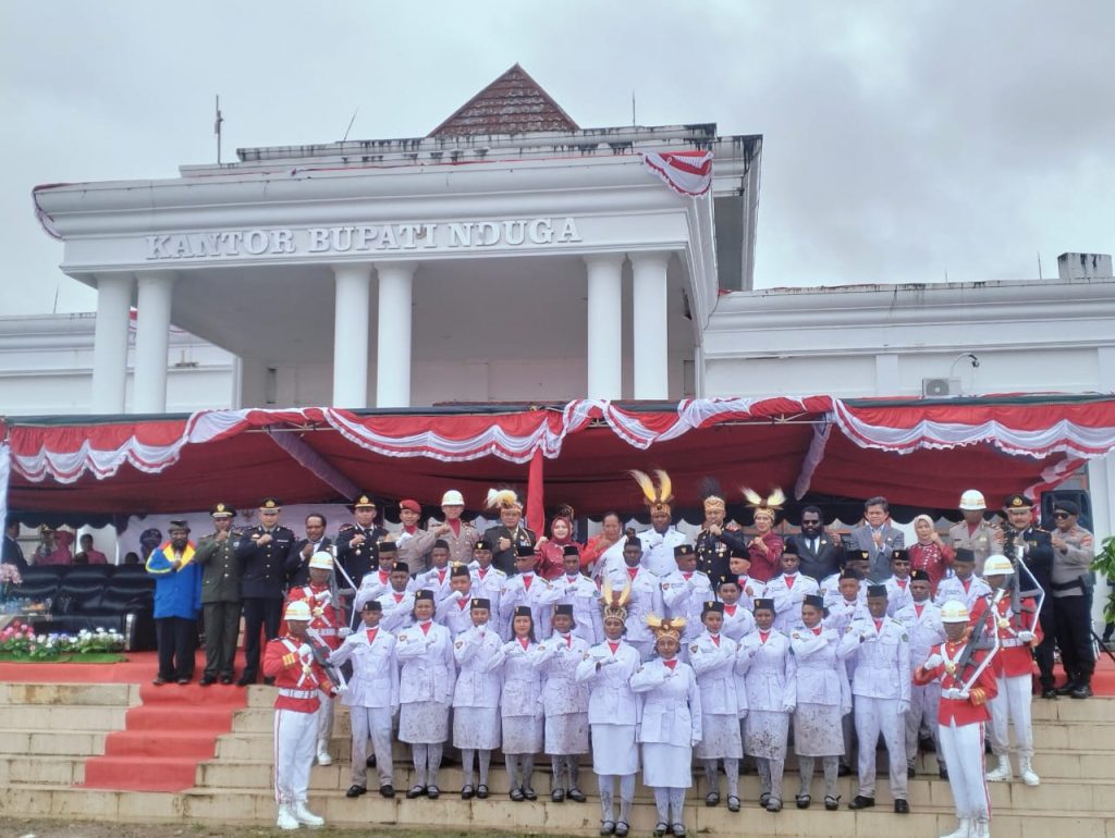 Dalam guyuran hujan, Pelaksanaan Pengibaran Bendera HUT RI ke-80 di Kenyam berjalan aman dan lancar. Plt, Bupati Nduga, Yoas Beon,S.Ip bertindak sebagai Inspektur Upacara dan Komandan Upacara Inspektur Dua (Ipda) Danindra Budiman (AKPOL 2023) dari Satuan Gegana Brimob Polri. Pembacaan Teks Proklamasi oleh Ketua DPRD Karto Nirigi,SH , Pembacaan UUD 1945 oleh Leo Mabel,S.Pd (Sekretaris Dinas Pemuda dan Olah Raga) dan Pembawa Doa oleh Alexander Inthe,SH (Kepala Kantor Kementerian Agama Kab.Nduga)