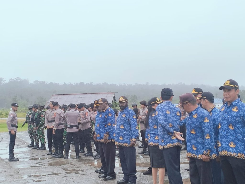Peserta Pengibaran Bendera 17 Agustus 2025 berasal dari unsur Aparatur Sipil Negara (ASN) , TNI/POLRI serta siswa-siswi SD,SMP dan SMA se-distrik Kenyam. (Kenyam-JMM/IZ/YL)