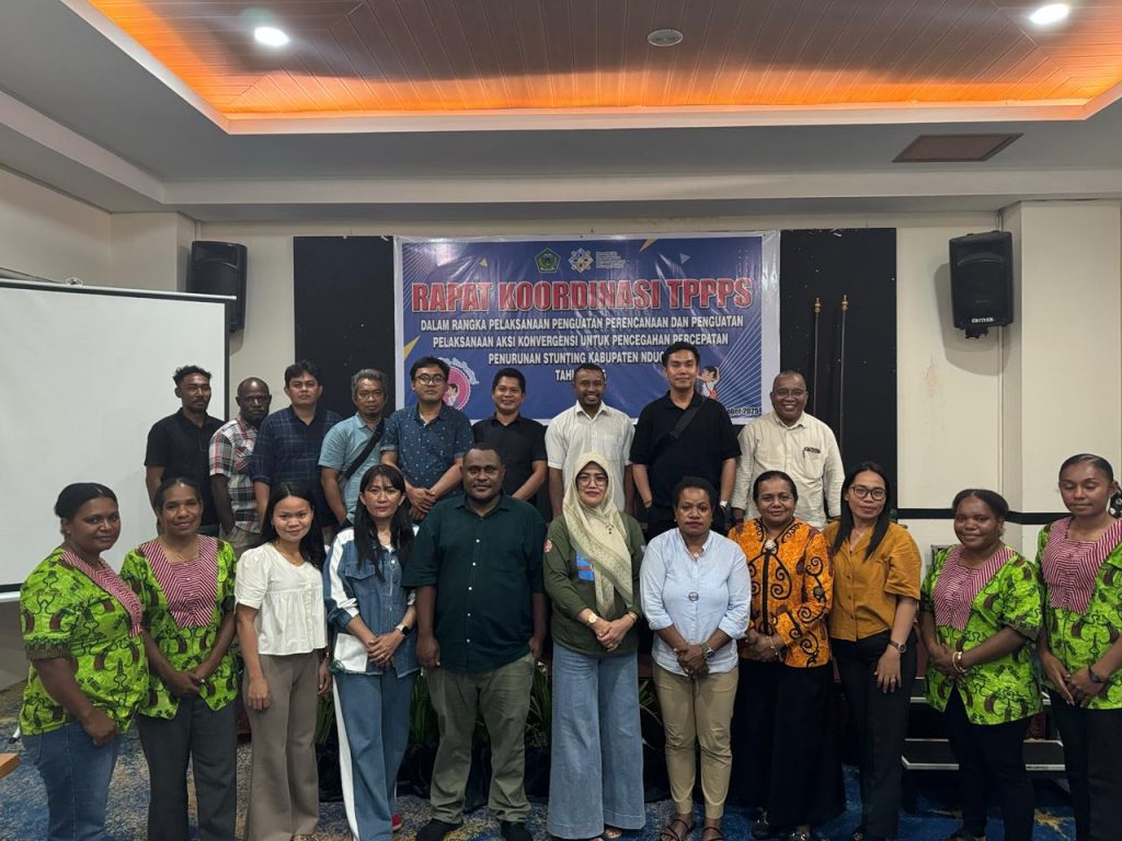Rapat Koordinasi TPPPS dalam rangka Pelaksanaan Penguatan Perencanaan dan Penguatan Aksi Kovergensi untuk Pencegahan Percepatan Penurunan Stunting Kabupaten Nduga. di tutup secara resmi oleh Plt. Kepala Bidang Keluarga Berencana Ketahanan dan Kesejahteraan Keluarga, Ismael J.V Wompere, S.Sos pada Kamis ,23 Oktober 2025 di salah satu hotel di Timika.