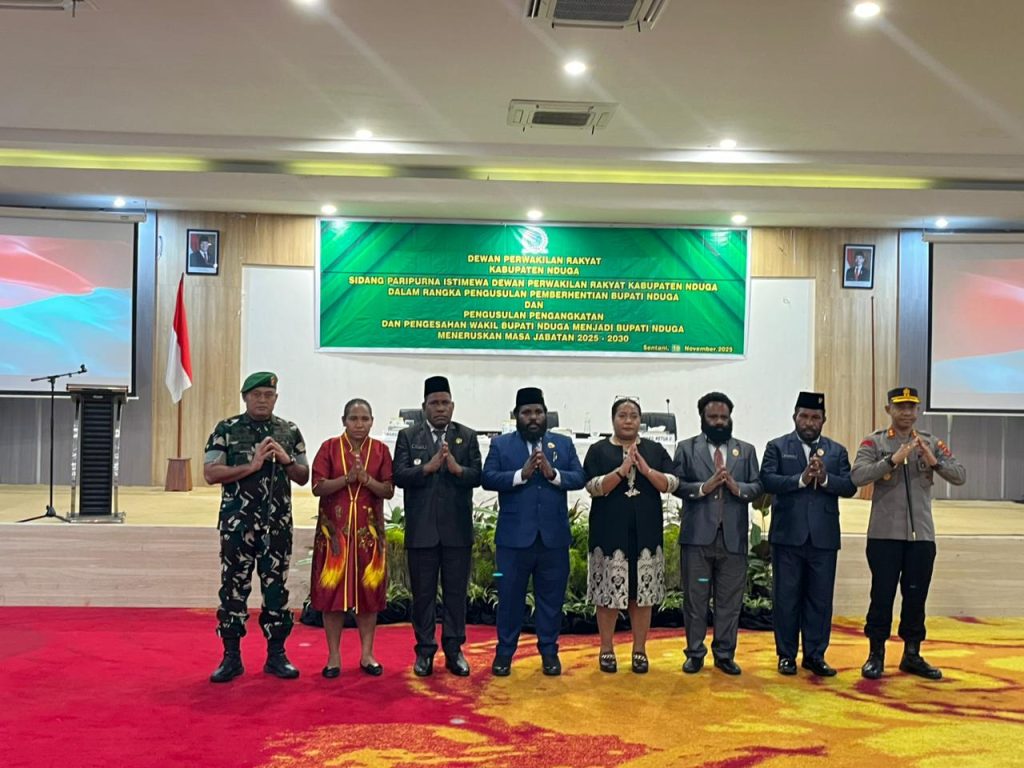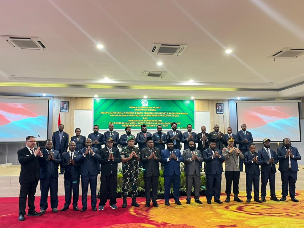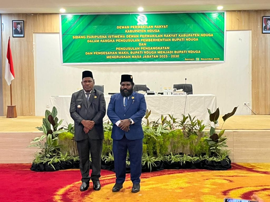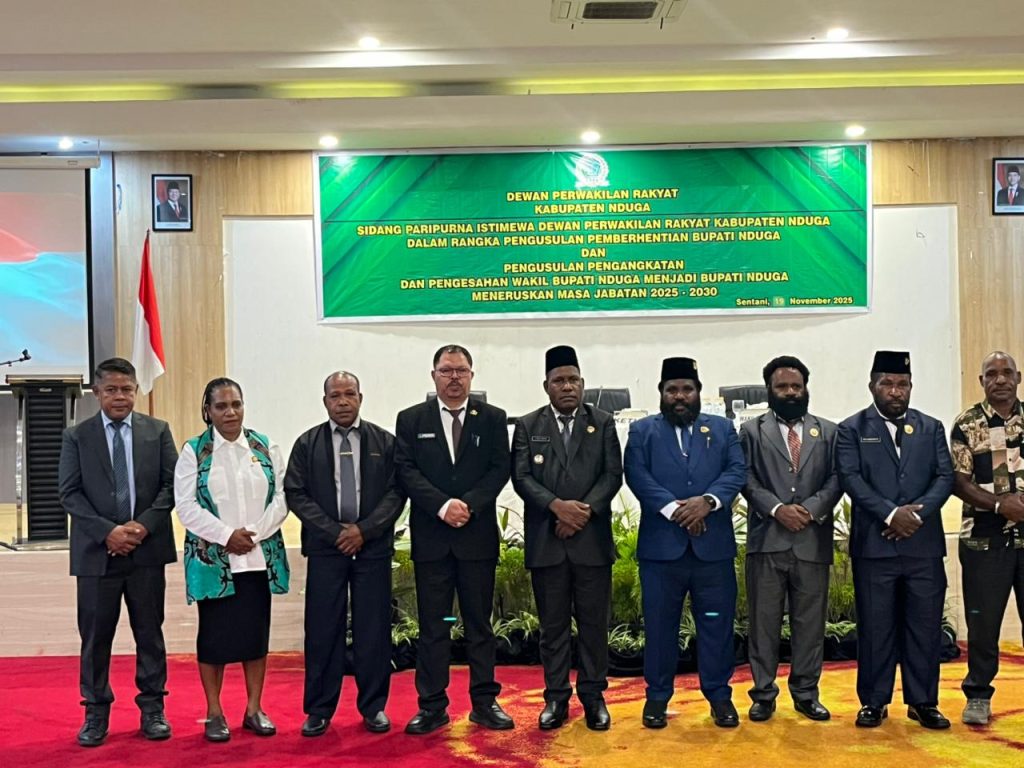 Dewan Perwakilan Rakyat Rakyat (DPRK) Nduga menggelar Sidang Paripurna Istimewa dalamrangka Peberhentian Bupati Nduga dan Pengusulan Pengangkatan Wakil Bupati Nduga menjadi Buapti Nduga Tahun 2025-2030. Kegiatan ini berlangsung disalah satu hotel di Sentani-Kabupaten Jayapura pada tanggal 19 Nopember 2025, dan dihadii oleh Unsur Pimpinan dan Anggota DPRK, Forkompimda, Plt. Sekretaris Daerah Kabupaten Nduga, Para Kepala OPD, Tokoh Agama, Tokoh Masyarakat, Tokoh Adat, Tokoh Pemuda dan tamu undangan lainnya.