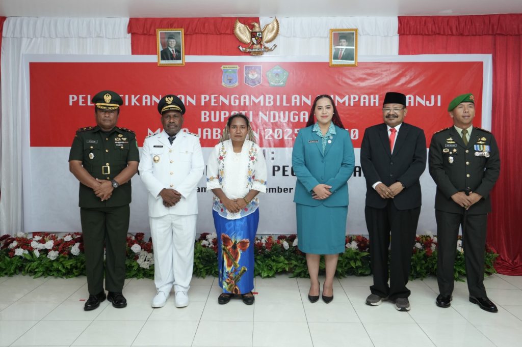 Pelantikan ini sendiri turut dihadiri unsur Forum Koordinasi Pimpinan Daerah (Forkopimda- Pimpinan TNI-Polri) serta para pejabat dan tamu undangan lainnya diawali dengan pembacaan Keputusan Menteri Dalam Negeri tentang Pengesahan Pengangkatan Bupati dan Pemberhentian Wakil Bupati Nduga, Provinsi Papua Pegunungan.